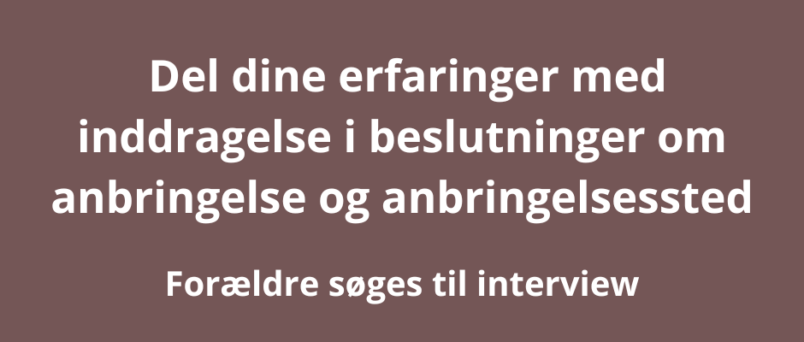 Er du forælder til et barn eller en ung, som er anbragt uden for hjemmet med samtykke? Så har du en vigtig viden, som nogle forskere gerne vil tale med dig om. Professionshøjskole Absalon og Københavns Professionshøjskole, som uddanner pædagoger…